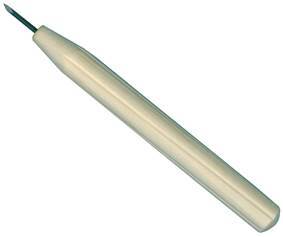 Hardened steel tips set into thick wooden handles for drypoint use. Square point (lozenge) for paper drypoint plates.