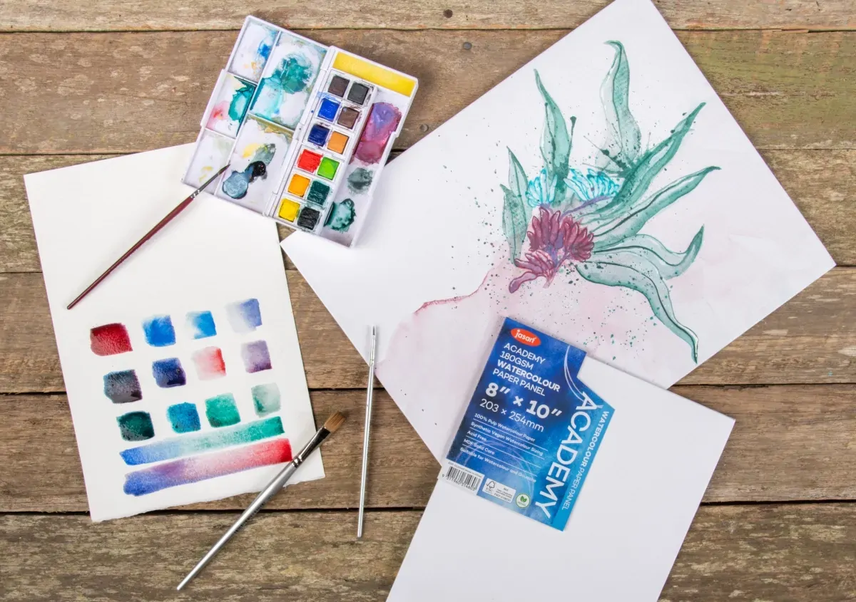 Jasart Academy Watercolour Paper Panels are a great alternative for those working with watercolour & gouache, looking for an alternate surface to work on. Solid core providing a strong stable working surface for all wet techniques. Ideal for quick studies, students, hobbyists and artists alike. 180gsm FSC® Watercolour Paper. 100% Pulp Cold pressed (medium texture), Stretched over a solid MDF core, Synthetic Vegan watercolour sizing, Acid-Free